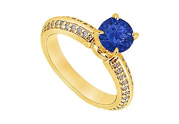 <( ̄︶ ̄)> Black Friday Sapphire and Diamond Engagement Ring : 14K Yellow Gold - 1.00 CT TGW Size 10 Deals