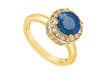Black Friday Sapphire and Diamond Engagement Ring : 14K Yellow Gold - 1.00 CT TGW Size 4 Deals